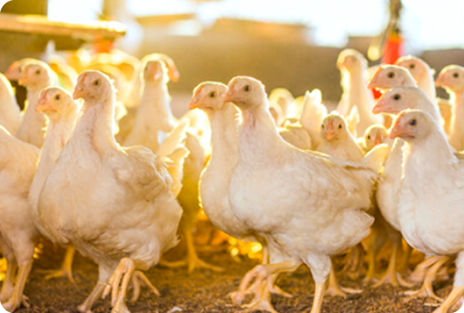 Cría, levante y producción de pollo de engorde para procesamiento industrial.